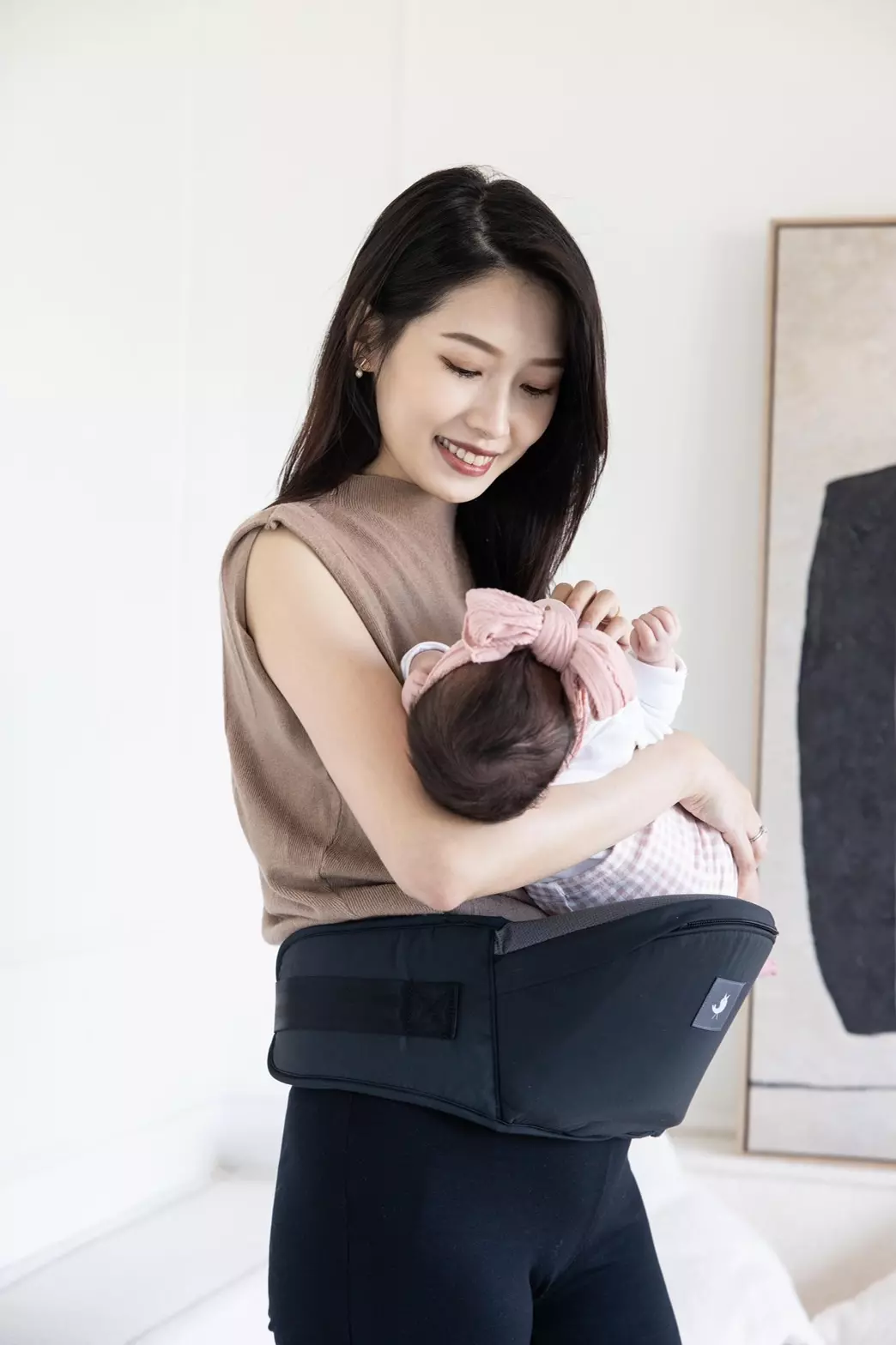 A: 對於剖腹產媽咪,產後三個月內建議先以椅凳模式「親餵輔助」或「短暫室內背負」為主。若要進行戶外長時間背負,建議視傷口復原狀況與個人體力逐步增加頻率,不要急於一時。